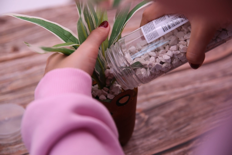 Bepflanzt eure Töpfe mit Blumen, Kräutern, Gräsern und dekoriert es mit euren Dekosteinen.