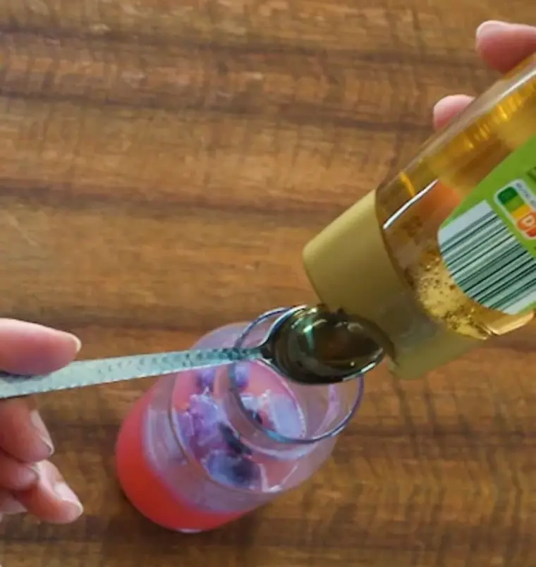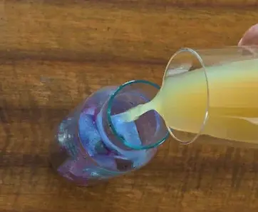 2. Den Apfelsaft und Himbeersaft in einem kleinen Krug oder Shaker vermischen.