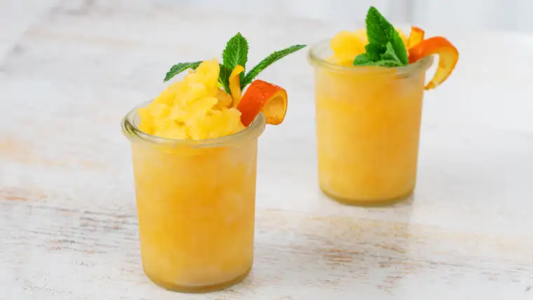 Fülle dein Orangensorbet in hübsche Gläser.