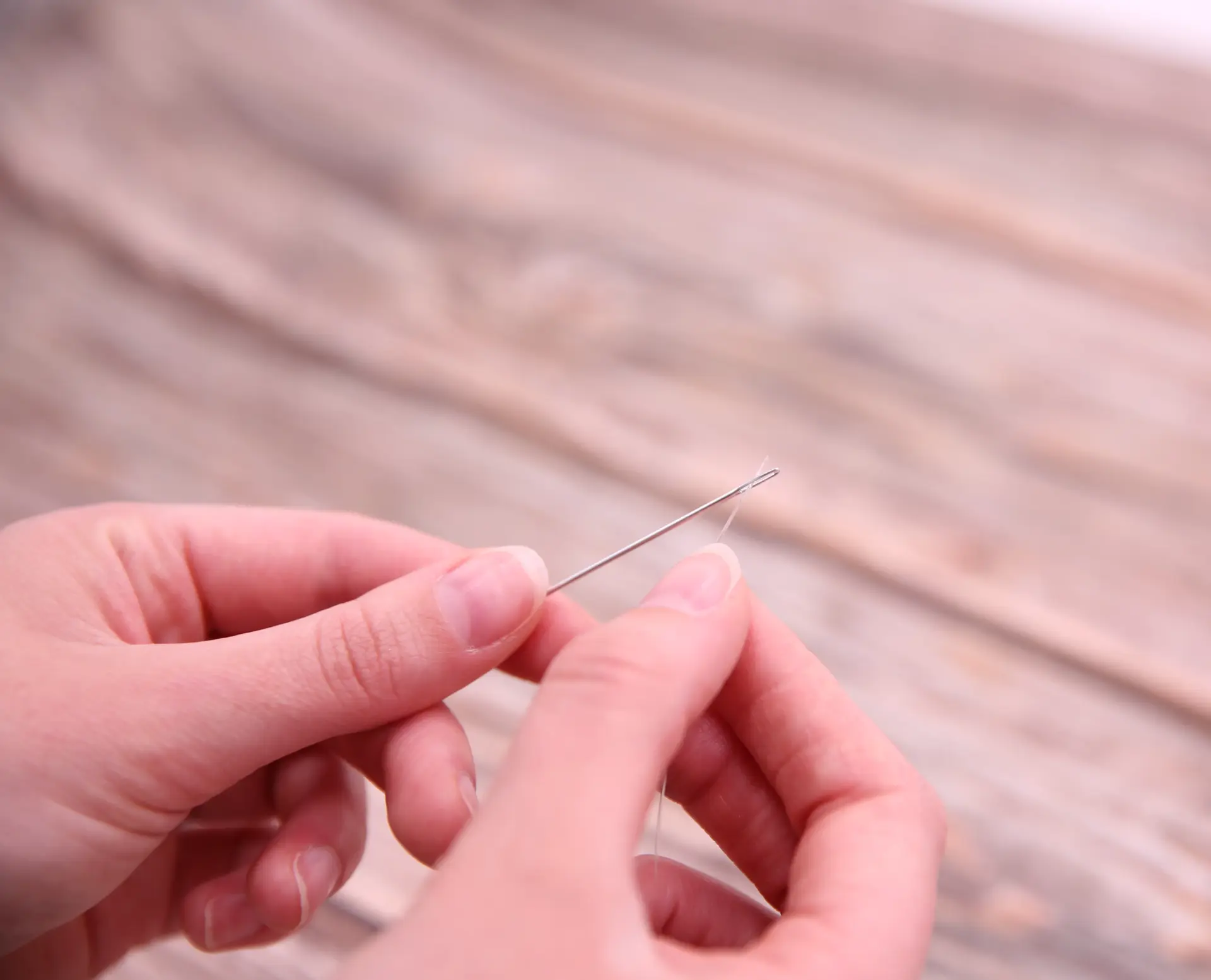 Fädel das Schmuckband durch den Nadelkopf.