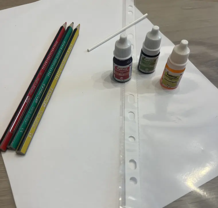 - Bunte Stifte (z.B. Rot, Grün und Gelb)
